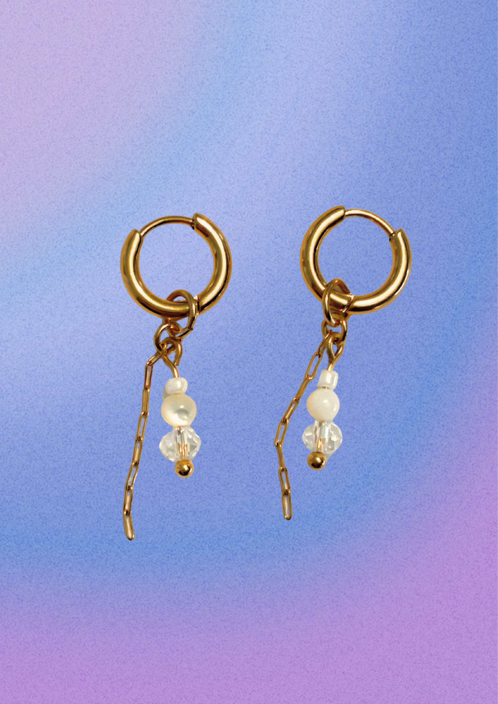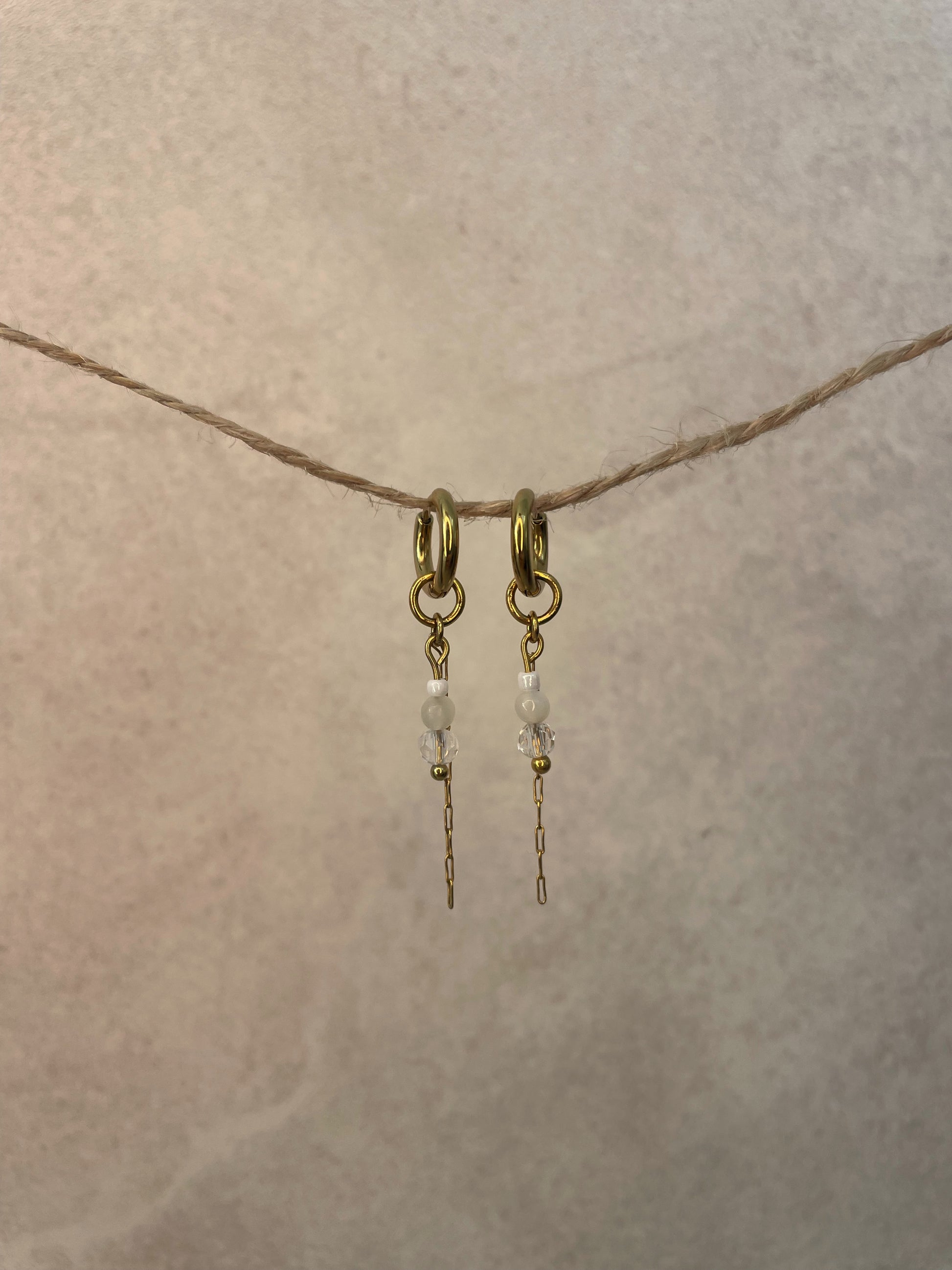 Description : Créoles au design original, composé de perles blanche accompagné d’une fine chaîne dorée. Un bijou à la fois élégant et audacieux, qui ne passe pas inaperçu et apporte une vraie touche de style à n’importe quel look 🤍🌟