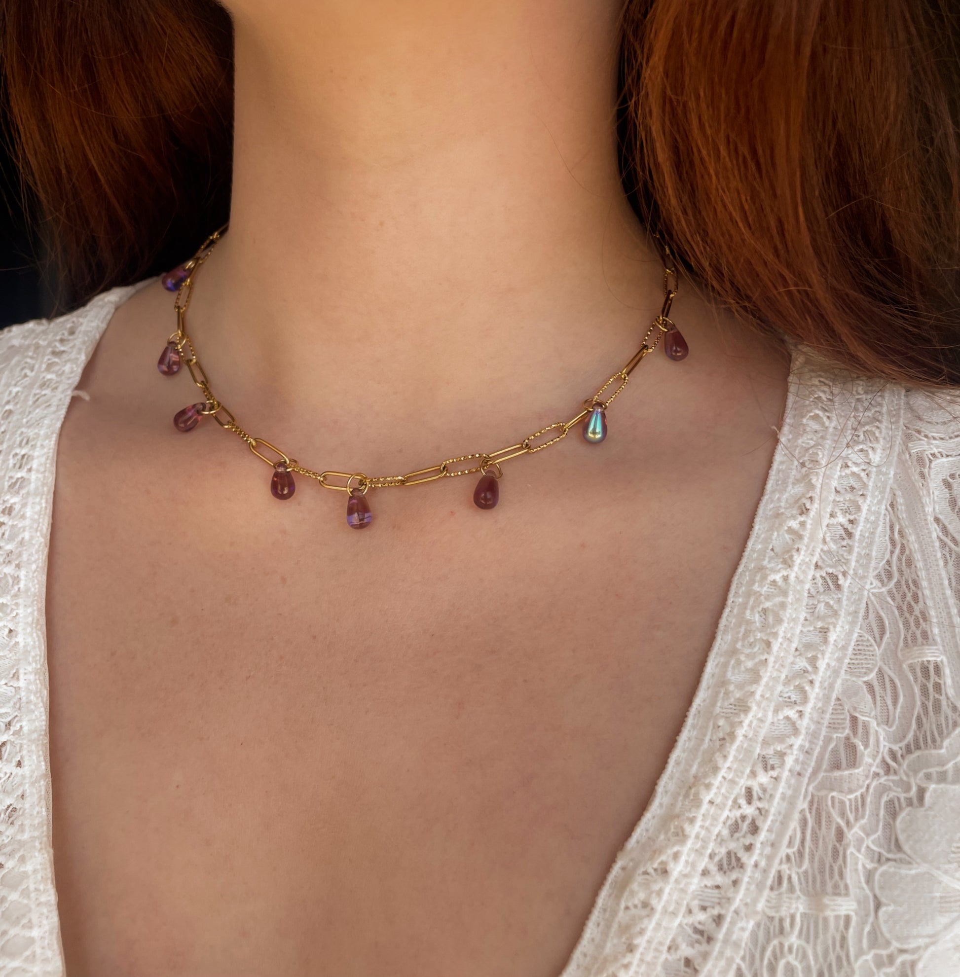 Description : Ce collier est orné de nombreuses perles en forme de goutte qui tombent délicatement le long du décolleté, créant un effet de cascade scintillante. Disponible en plusieurs couleurs, il s'adapte à toutes les occasions, ajoutant une touche de féminité et de glamour à votre tenue ✨💫